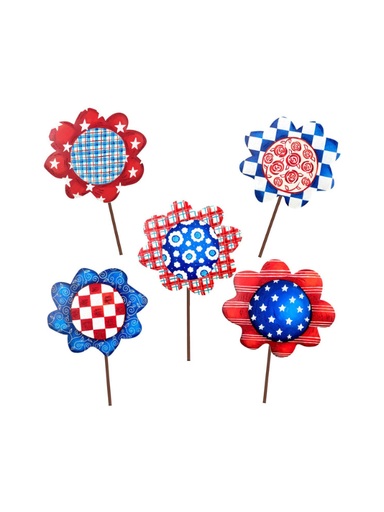 Add a playful pop of patriotic charm to your planters and garden beds with these handpainted flower stakes. Designed in a whimsical floral ...