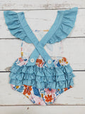 Baby Girls Flower Ruffle Bubbles. The Baby Girls Flower Ruffle Bubbles are designed to keep your little one both adorable and comfortable. Made with the softest materials, these bubbles offers a snug fit while still allowing for plenty of movement and flexibility for your baby girl. Material is polyester