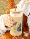 This latte glass is perfect for adding a touch of slow living beauty to your drinkware collection or as a delightful gift for chicken enthusiasts, farm friends, or nature lovers. Format | Glass Coffee Cup Features | Hand-painted design on glass coffee cup with bamboo lid. Straw included. Size | Holds 16 oz. Care Instructions | Hand wash only