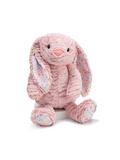 Dusty Rose Plush Bunny With Floral Fabric Ears