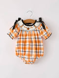 Celebrate the season in style with this adorable Fall Halloween baby girl bodysuit. It features bright orange embroidery, classic ruffles and a charming bow for the perfect combination of festive flair and coziness. Perfect for fall outings or Halloween photos, this bodysuit will keep your little one looking cute and warm all day long.