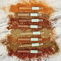 Each spice blend is meticulously packaged in an individual glass tube with a twist off lid, ensuring freshness and convenience