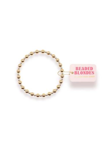 Beaded Blondes gold stackable beaded bracelets with 5mm + 2.5mm pattern. Made from 14 k gold filled beads so perfect for everyday wear! Sweat pro...