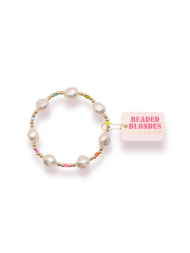Beaded Blondes Spring 2025 Collection. This bracelet is made with colorful czech glass beads, 2.5mm beads & pearls. 14K gold filled & elas...