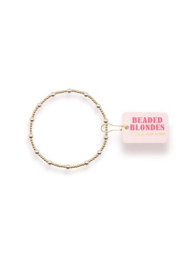 Beaded Blondes june bracelet made with 2mm + 5mm fluted beads. Made from 14 k gold filled beads so perfect for everyday wear! Sweat proof, water ...