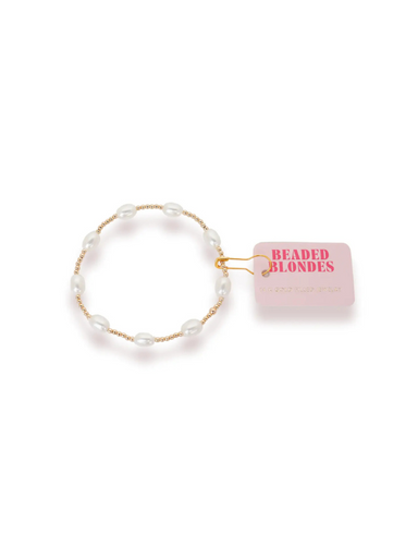The Willow Pearl bracelet is a mix of 5mm beads & pearls. • 14 K gold filled & elastic string • Handstrung in College Station, Texas. So...