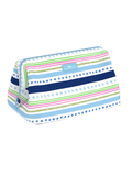 Open… WIDE! Designed for maximum access, this easy-clean bag not only opens up wide but it stays open thanks to a built-in wire frame. Ideal for travel (three-ounce bottles fit upright) or at-home countertop use. Smaller version also available.