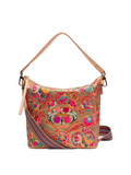 The Hobo is a convertible crossbody or shoulder bag with two included straps. This embroidered bag comfortably carries the essentials and much more. Perfect for those who like to be prepared for anything and everything!
