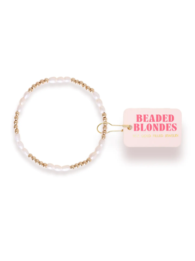 4MM gold bracelet with three pearl alternating design. • 14 K gold filled & elastic string • Handstrung in College Station, Texas. • Waterpr...
