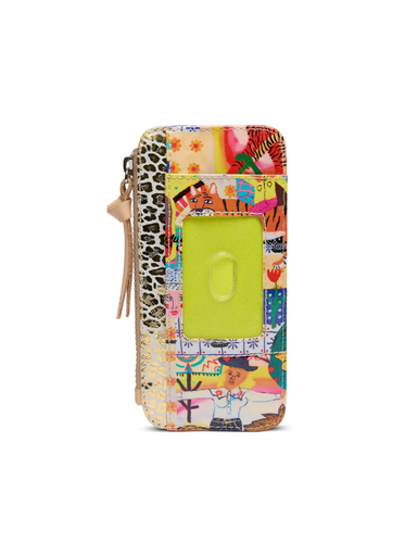Diego leather five-slot card wallet with D-ring  Diamond canvas wristlet  Trimmed in natural, untreated leather 5” (H) x 8” (W) Pouch 3” (H) x 4” ...