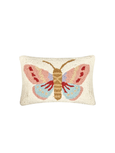 Wool hook pillow with velvet backing. Includes polyester insert, zipper closure Measures 12X18"