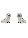 A darling nod to traditional Staffordshire style, these petite porcelain pups add instant charm to your bar cart, charcuterie board, or cocktail table. Featuring delicate hand-painted details, soft polka dots, and a sweet gold chain collar accent, each dog doubles as a hidden toothpick holder tucked neatly behind.