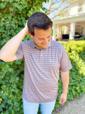 Maybourne Featherlight Stripe Polo In Navy & Red Maybourne By Southern Marsh