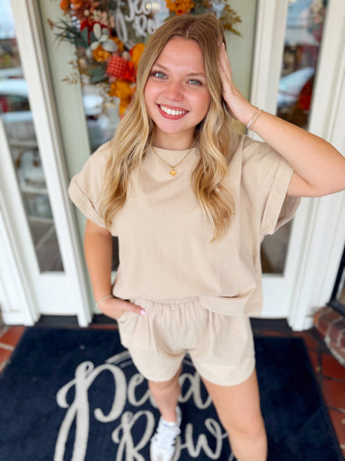 This listing is for the shorts only Available in S-L 100% Cotton True to size, Sawyer is wearing a medium