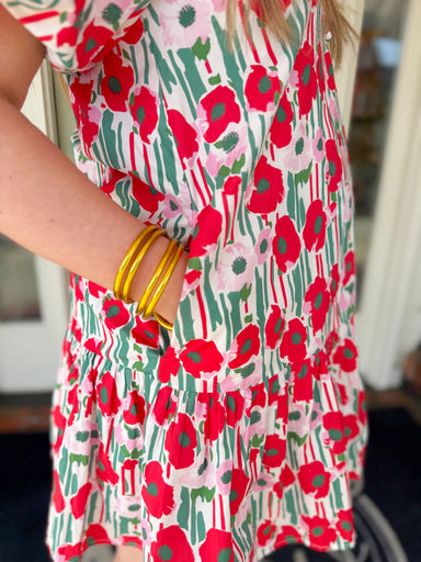 This charming short sleeve dress features a beautiful blend of striped and floral patterns for a look that’s both fresh and eye-catching. The uniqu...
