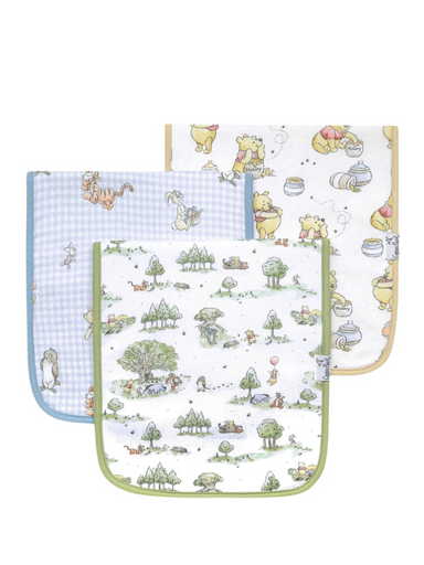 Our burp cloths come in a generous 21x10 inch size, providing greater shoulder coverage (and less outfit changes) for Mom and Dad. 3-Pack