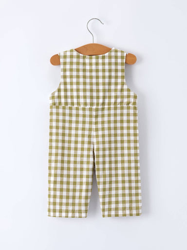 Adorable green plaid romper featuring hand-embroidered fish details and classic smocking across the chest. This one-piece wonder combines timeless ...