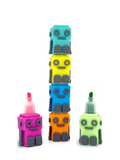 Rubberized Robot Markers 5 BRIGHT colors, chisel tip - Soft-touch Brite Bot marker stacked is 8” x 1”