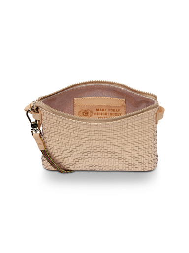 $125.00| /Diego leather five-slot card wallet with D-ring Diamond canvas wristlet Trimmed in natural, untreated leather 5” (H) x 8” (W) Pouch 3” (H) x 4” ...