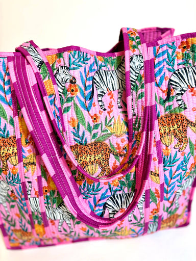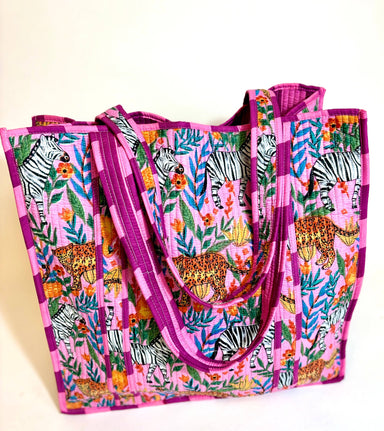 These are hand quilted and crafted in India using block printing. Bag measurements: 16” x 16” (Our largest size tote bag) No zipper, includes an in...