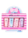 This four-piece moisturizing hand cream gift set features silky, quick-absorbing formulas in four soft, comforting scents: Blush Crush (rose), Vanilla Whirl (vanilla), Cherry Crush (cherry), and Berry Bliss (strawberry).
