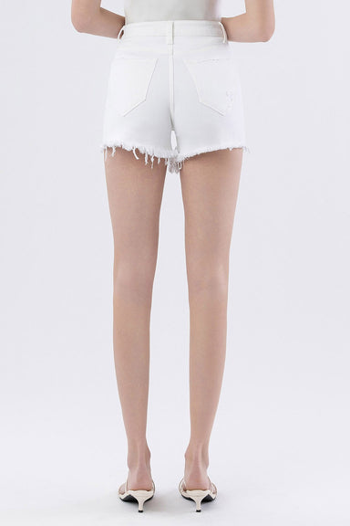 Available in sizes 28-32 92% Cotton, 6% Polyester, 2% Spandex Comfort stretch denim, high rise waist, distressed detail, uneven raw hem