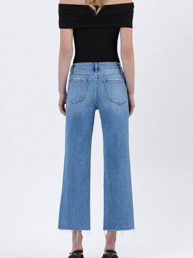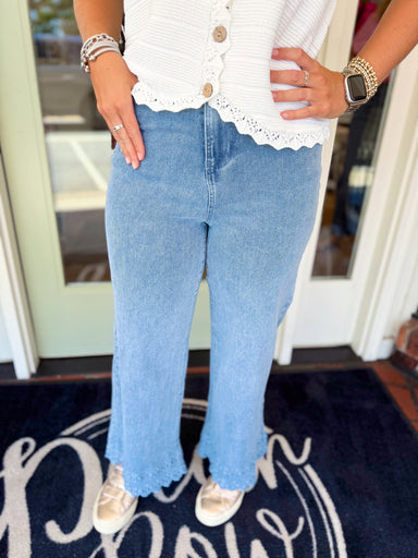 High Rise Clean Cut Hem- Wide Jeans Available in Sizes 24-32 99% Cotton, 1% Spandex