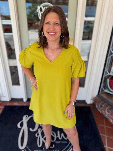 Available in S-L Self: 100% Cotton Lining: 100% Polyester Dress has pockets!  Megan is wearing a small