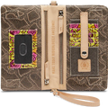 - Included detachable wristlet strap and adjustable woven crossbody strap