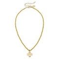 Experience the elegance of the Gold Cross on Gold Beaded Necklace by Susan Shaw. This handcast gold cross pendant, draped on a string of gold beads, emanates an aura of sophistication.
