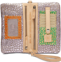 - Included detachable wristlet strap and adjustable woven crossbody strap