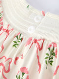 Spring Floral Smocking Embroidery Bow Girls Dress