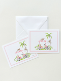Bring a little island whimsy to your space with this set of 5 notecard set. Featuring a pink golf cart tucked beneath breezy palm trees and mischievous monkeys playing overhead, this piece feels carefree, happy, and full of personality. Soft watercolor strokes and a lighthearted scene make it the perfect pop of color for a sweet note to a friend.