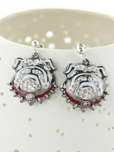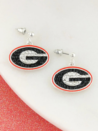 Silver plated post earrings with black and clear rhinestone and red enamel Georgia logo charms. This is an officially licensed product.