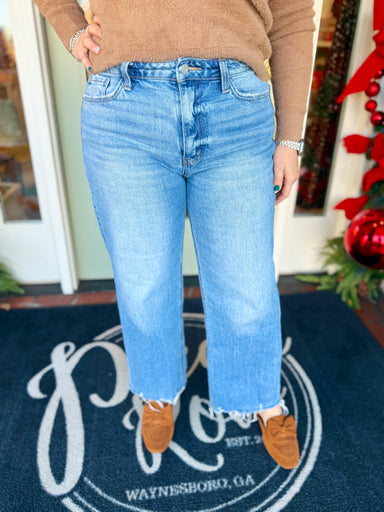$68.00| /High Rise Clean Cut Hem- Wide Jeans Available in Sizes 24-32 99% Cotton, 1% Spandex