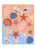8x10 canvas featuring seashells, starfish, and retro beachy vibes