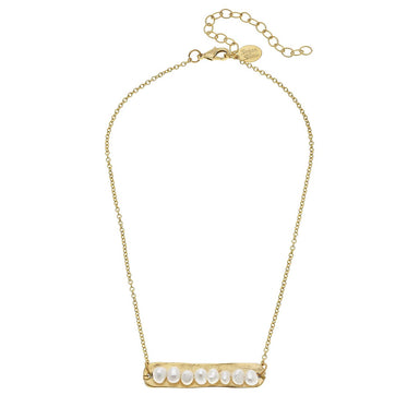 Classic with a modern twist, this Susan Shaw pearl bar necklace is an effortless statement you’ll wear on repeat. Featuring a row of luminous fresh...