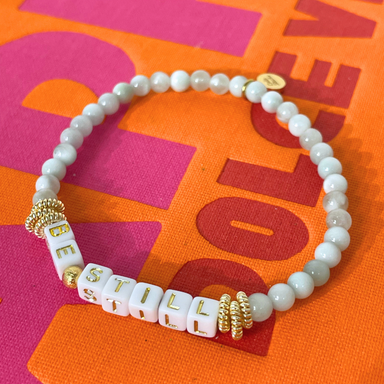 Your daily reminder to Be Still! One of our every day pieces from the Faith Collection has a little pop of color with gold plated accents. This wom...