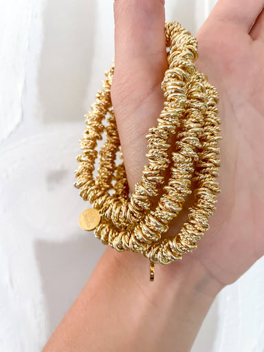 The Gold Shelley Bracelet from Cola Stacks is a stunning addition to any woman's wardrobe. This classic bracelet is handmade in Columbia, SC. The 7...