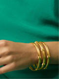 This stunning 24K gold-plated, polished bangle featuring delicate knotted accents and a width of approximately 0.3 inches. Designed for versatile, everyday wear, this lightweight, handcrafted piece is designed to be layered with other bracelets or worn alone for a refined and sculptural look.