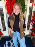 Contrasting corduroy trim on shoulders, pockets, and collar for vintage elegance