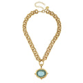 Aqua Venetian Glass Bee Intaglio on Gold Chain Necklace