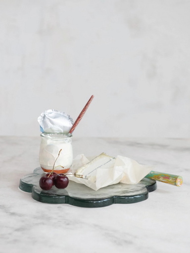 2-piece set: platter and spatula Hand-painted stoneware platter, 11" diameter Includes brass plate metal spatula, 6"