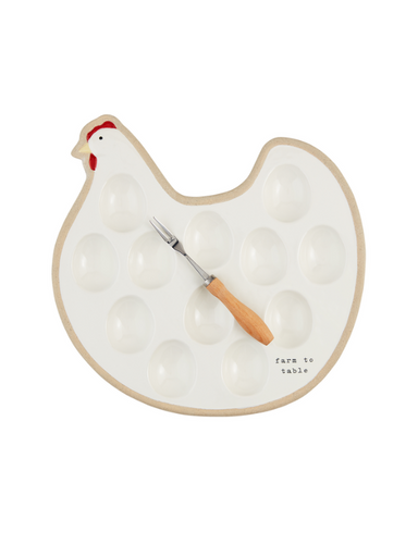 The Hen Deviled Egg Platter 2-piece set is a delightful addition to your kitchen. Hand-painted stoneware design with a rustic feel. Comes with a st...