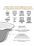 The Solid Baking Pan in classic white is a versatile and elegant choice for all your baking needs! Crafted from durable enamelware, this pan is perfect for casseroles, lasagnas, or desserts, ensuring even cooking every time. Elevate your culinary creations with this timeless piece that effortlessly complements any kitchen decor!