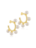 Handmade in Brazil. These Shiny Gold Hoops are embellished with 5 Glowing Man Made Ivory Pearls. A variation of our Augusta Hoops but with the elegance of Pearls!