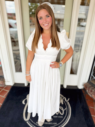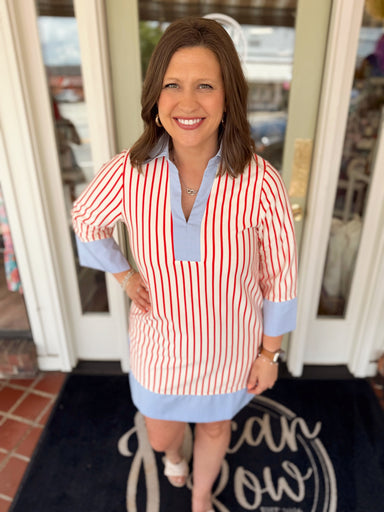 $75.00| /Available in S-L Self: 100% Cotton Lining: 100% Polyester Dress has pockets! True to size, Sawyer is wearing a small