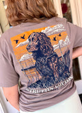Nothing says Southern tradition like a Boykin Spaniel at sunrise. The Struttin’ Cotton Boykin Outdoor Traditions Tee captures man’s best friend in his element—watchful, loyal, and ready for the next retrieve. With a stunning marsh backdrop and flying ducks overhead, this tee is a tribute to the bond between hunter and dog.