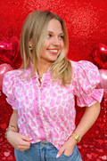 This pink leopard ruffle neck top features ruffle sleeves with an elastic band and a flattering silhouette that feels feminine but bold. Style it with jeans for casual days or dress it up with statement earrings for a night out.