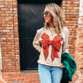 Add some holiday flair to your wardrobe with this Plaid Bow Longsleeve! Featuring a festive Christmas plaid bow in a vibrant coral-red color, this longsleeve tee is sure to bring some cheer to your outfit. Happy holidays!